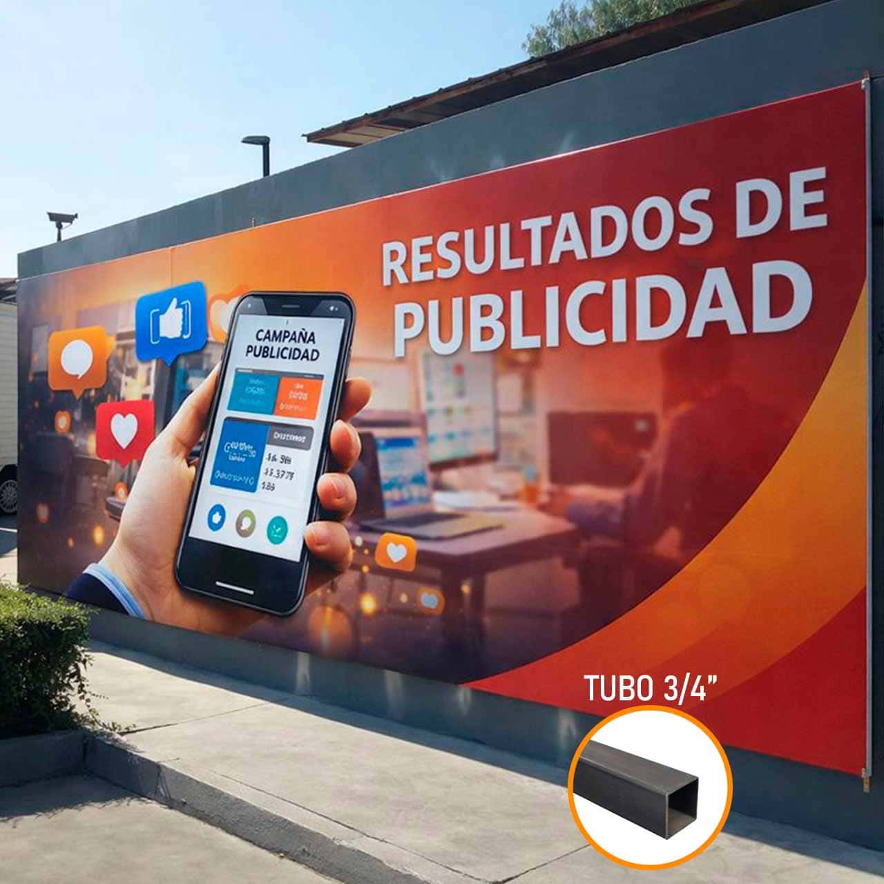 Banner impreso en alta calidad, resistencia, con colores intensos y excelente durabilidad para uso interior y exterior. Perfecto para negocios, ferias, campañas y señalización comercial.