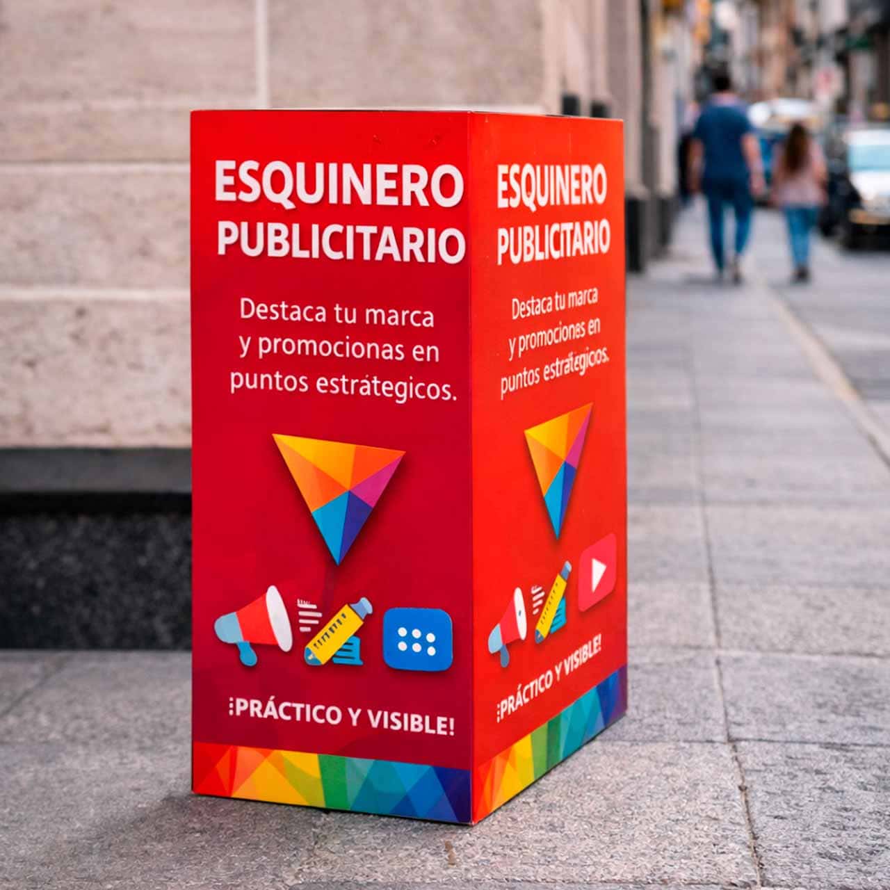 Los esquineros publicitarios son una solución visual compacta y estratégica, ideales para destacar promociones, marcas o mensajes clave en puntos de alto tránsito. Su diseño práctico permite una excelente visibilidad desde distintos ángulos, optimizando el impacto publicitario en espacios reducidos.